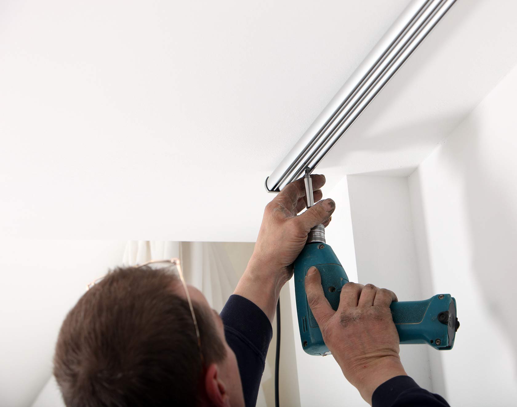 Чтобы установленный карниз держался крепко и надежно, нужно выбрать подходящий способ монтажа и выполнить пошагово все этапы установки. Обязательно учитывают тип потолка, так как на некоторые виды подвесных потолков крепить карниз без предварительной подготовки нельзя.