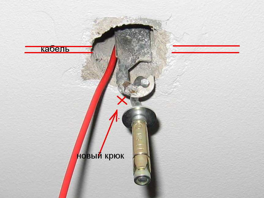 В случае, когда крюк смещается с первоначальной позиции либо выпадает из потолка, нужно выполнить следующие действия: