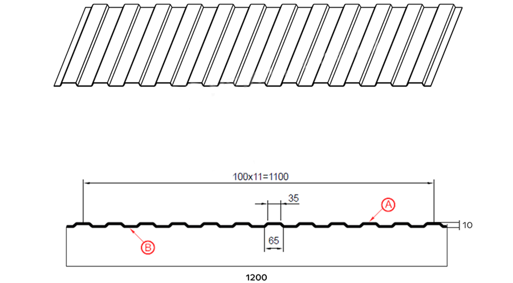 Используется для фасадов и заборных ограждений. Заготовки имеют габаритную ширину 1,2 метра, полезную ширину — 1,1 метра, высоту профиля — десять миллиметров, толщину стали — от 0,4 до 0,7 миллиметров.