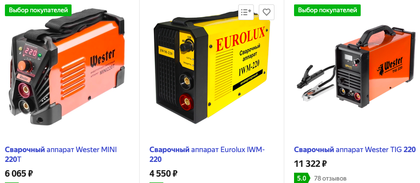 Примерная стоимость инверторов для сварки на Яндекс.маркет