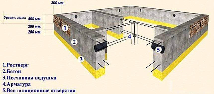 Если возводить ленточный фундамент своими руками, необходимо выбирать марку материала, исходя из условий эксплуатации. Однако, в нестандартных решениях необходимо обустроить дополнительную защиту основания от воздействия агрессивных сред.