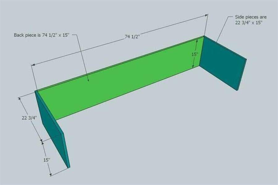 Инструкция простая. Отрежьте доски изголовья 1×6 с помощью торцовочной пилы. Разложите, как показано на схеме. Измерьте общую ширину. Прикрепите доски 1×4 сверху и снизу, выровняв все внешние края. Убедитесь, что панель имеет квадратную форму (а не параллелограмм), измерив диагонали внешнего угла и отрегулировав до совпадения размеров двух противоположных диагоналей. Прикрепите планки 2×2 к внутреннему заднему краю ножек 4×4.