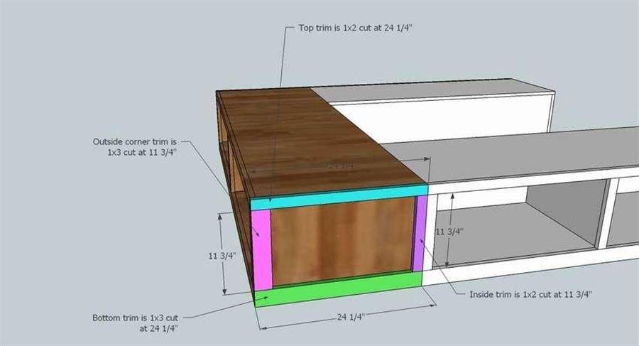 Начнем с чертежа всей конструкции. Это разные модули. Каждый компонент собирается отдельно. Начнем с тумб.