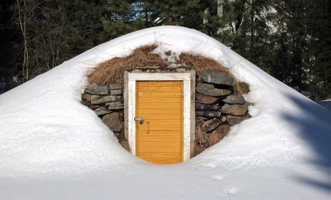 - На участке в зимнее время почва промерзает не глубоко, так как в противном случае придется поддерживать внутри земляного погреба плюсовую температуру (а в идеале должно быть +2..+4 градуса).