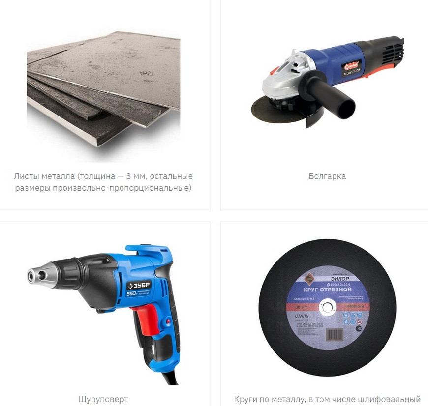 Для любых работ по изготовлению мангала из металла потребуется одинаковая подготовка. Необходимо будет собрать следующие детали и инструменты: