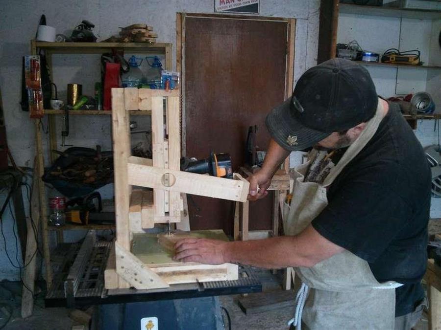 7. Покраска элементов и смазка узлов. После изготовления станка можно покрасить все элементы для защиты металла от коррозии. Для этого подойдет любая краска. Дополнительно рекомендуется смазать все трущиеся детали литолом или любой другой технической смазкой. Рукоятку можно оснастить самодельными деревянными ручками для удобства пользования станком.