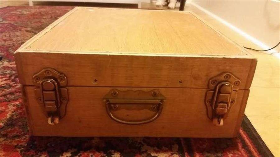 Сначала делается деревянный ящик, с защелками и крышкой на завесах: