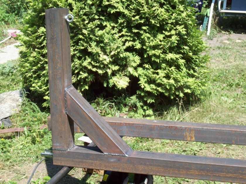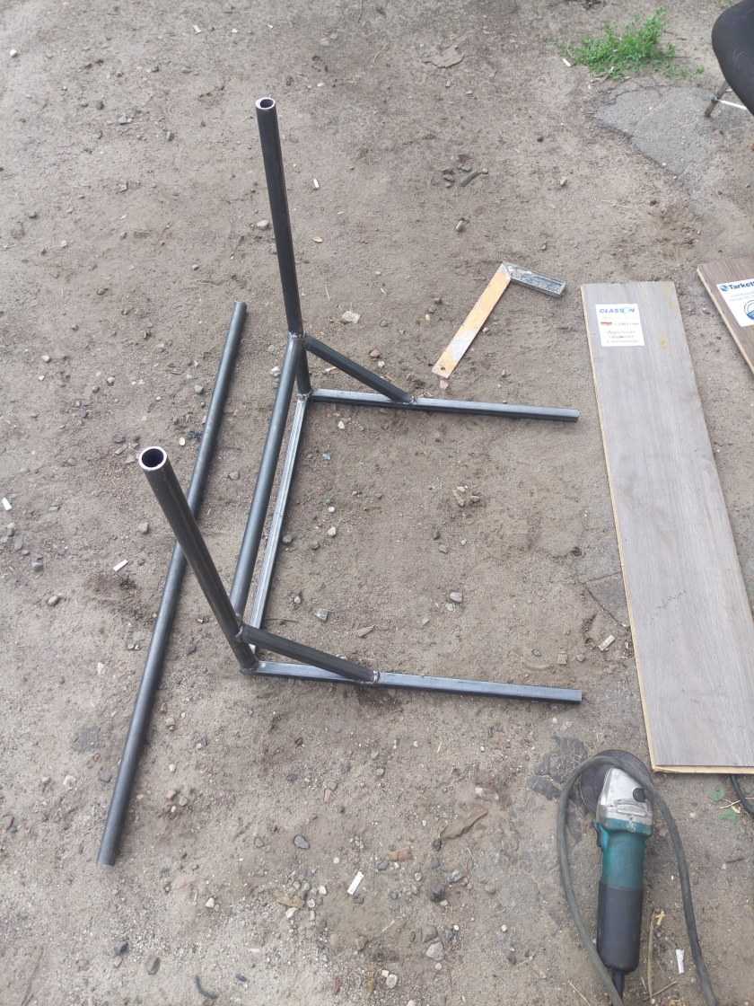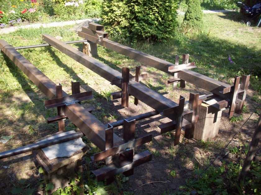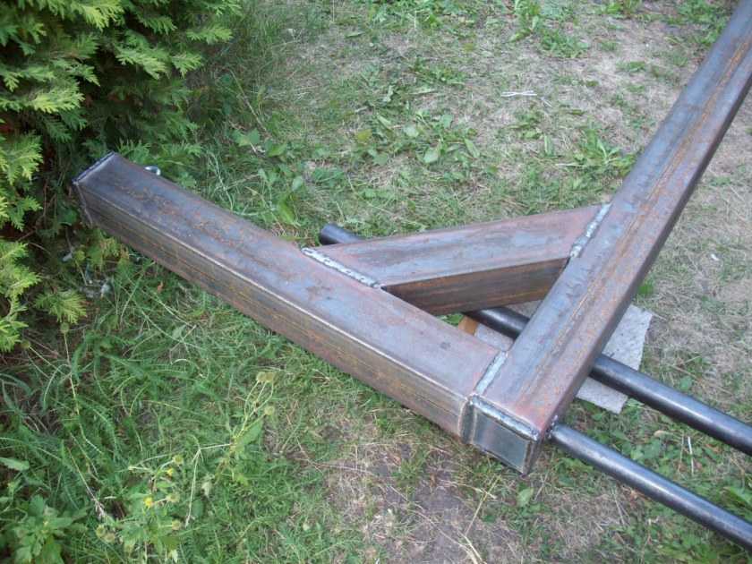 Несмотря на недостатки, вышеприведенная конструкция много раз повторена. Она проста, надежна, занимает немного места, поэтому популярна. Размеры немного корректируют, оставляя диаметры труб и толщину уголков без изменений или увеличивая толщину стенок. Пример — на фото ниже.