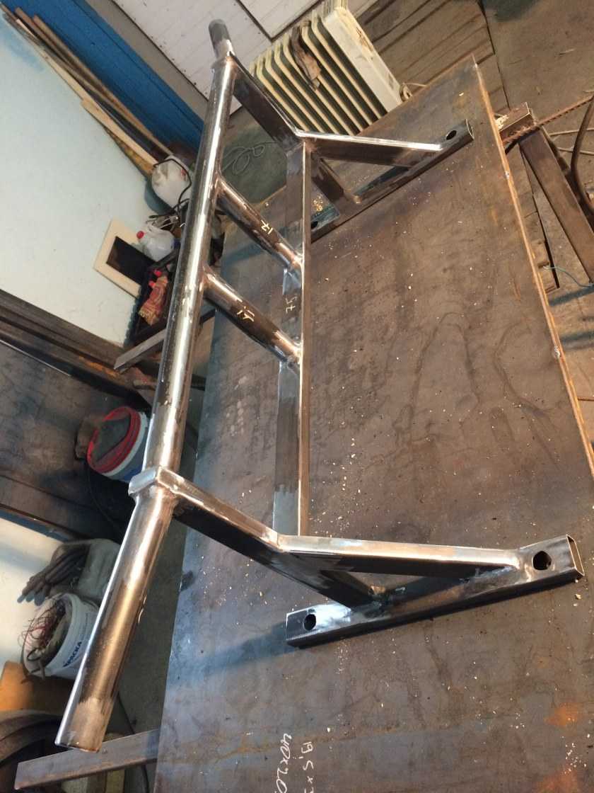 Несмотря на недостатки, вышеприведенная конструкция много раз повторена. Она проста, надежна, занимает немного места, поэтому популярна. Размеры немного корректируют, оставляя диаметры труб и толщину уголков без изменений или увеличивая толщину стенок. Пример — на фото ниже.