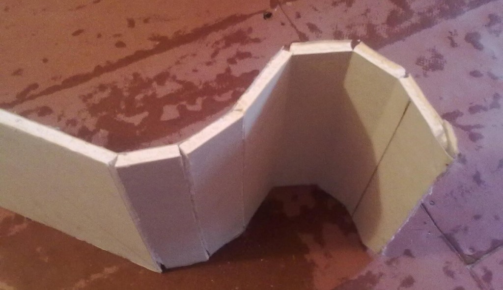 - А как загибать гипсокартон, чтобы надрезы оказались внутри, и выпуклая сторона оказалась гладкой? Если вам понадобится фигура, сделанная именно таким способом, то вы на это потратите немного больше времени, чем на обычную подрезку, но всего лишь чуть-чуть.
