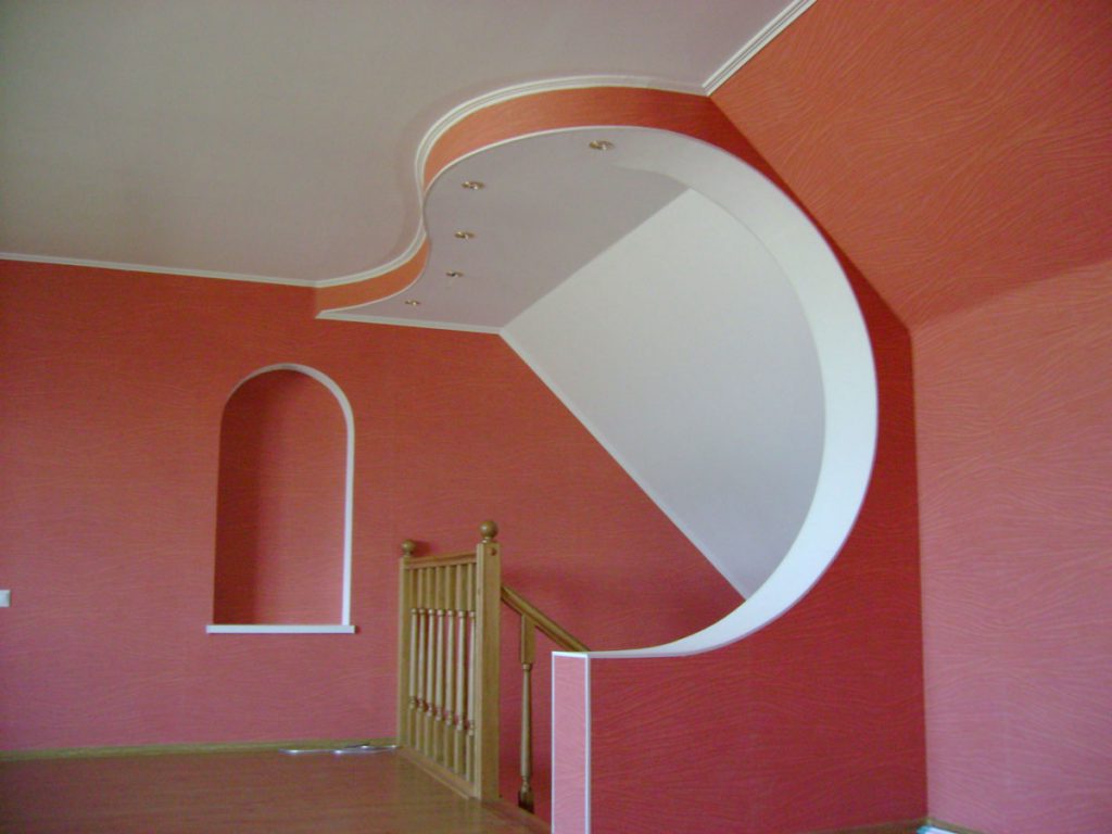 Изгибание гипсокартона предполагают следующие виды декоративных конструкций: