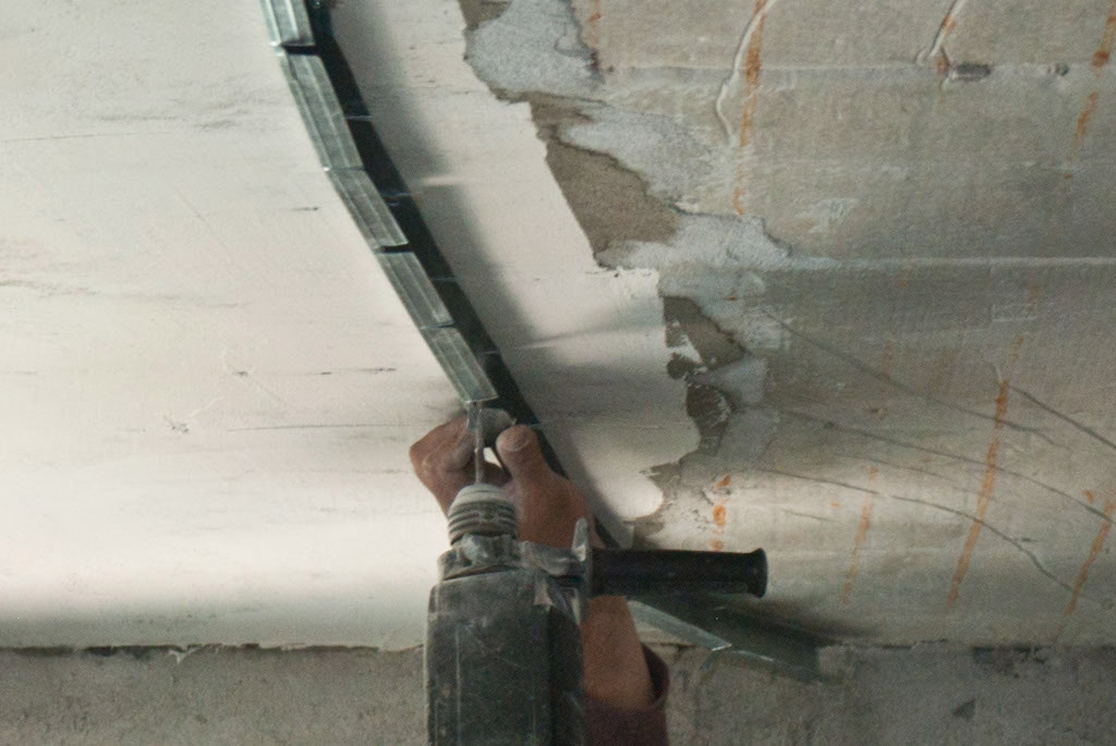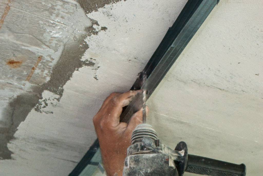 Если вы хотите прикрепить металлический профиль к конкретному потолку / стене, вы должны предварительно сделать несколько пробных отверстий в несущей поверхности дрелью.