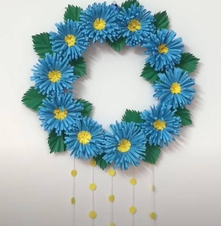 Очень просто сделать объемный декор для стен из цветной бумаги. Только она должна быть двусторонней — листы должны быть окрашены с обоих сторон. Нужен будет еще двусторонний скотч, а еще — карандаш, ножницы, может быть — картон.