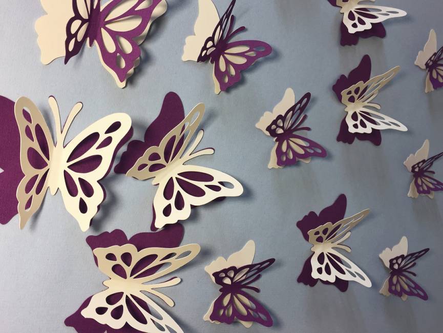 Декор для стен из бумаги: бабочки, цветы, сердечки