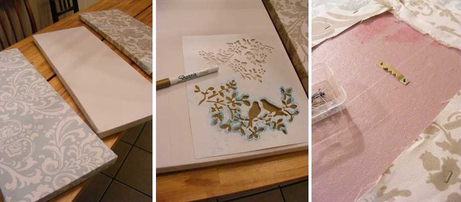 Нарезать пенопласт на равные или разные по размеру полосы, обернуть подходящей тканью или обоями. Закреплять их проще всего скобами из строительного степлера.