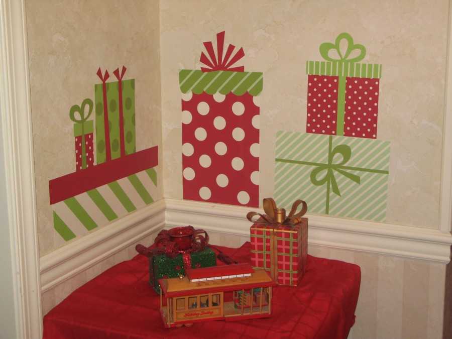 Еще один романтичный вариант — сердечки. Их также вырезают из бумаги, только вырез делают поглубже. Потом соединив и склеив разрезанную часть, придают декору объем. Крепят их точно также — на кусочки двухстороннего скотча.
