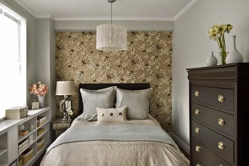 Мелкий рисунок (изображение 2), особенно в светлых тонах, будто раздвигает пространство, благодаря этому он увеличивает комнату.