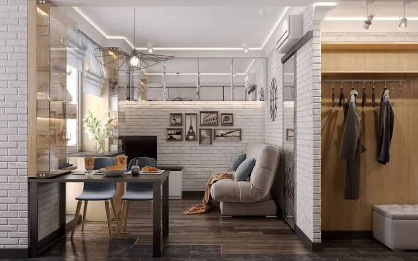 - Зонировать пространство при помощи цвета. Если прихожая перетекает в комнату, а она в кухню, не разделяйте зоны разными цветами или оттенками. Это раздробит квартиру на мелкие помещения. Лучше объедините помещения в одно функциональное пространство.