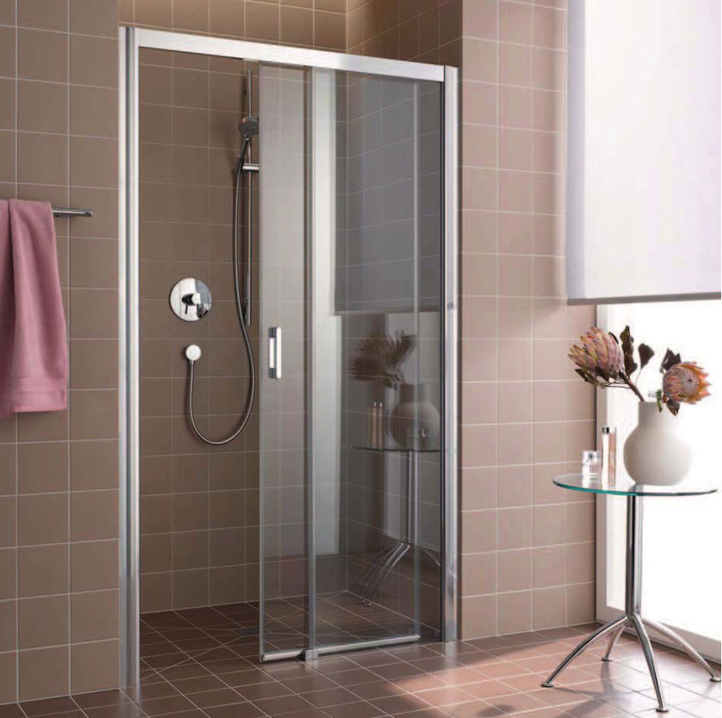 Если вы планируете установить достаточно большую душевую кабину, для экономии места следует отдать предпочтение раздвижным дверям. Такие двери состоят из двух и более взаимно перекрывающихся полотен, которые плавно «переходят» друг в друга и при полном открытии двери «сжимаются» до размеров одной створки.