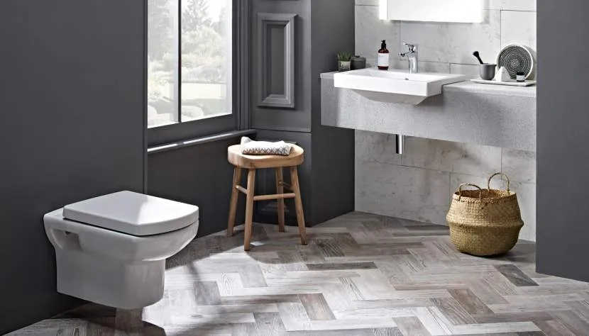- при необходимости сделать в туалете теплые полы монтаж будет более легким, так как не придется «обходить» унитаз и прокладывать нагревательный элемент с учетом стойки, как это происходит в случае с напольными унитазами.