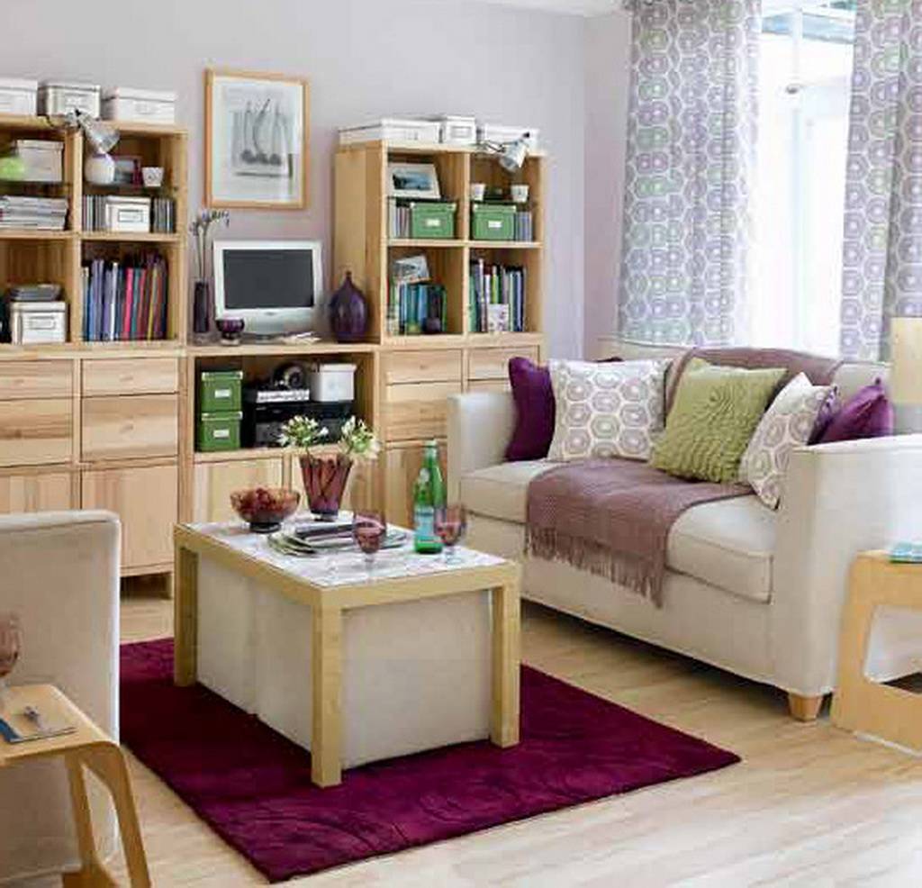 Гостиная допускает использование нескольких маленьких ковриков. В этом случае они должны быть яркими (одного или разных цветов), чтобы расставить ими эффектные цветовые акценты.