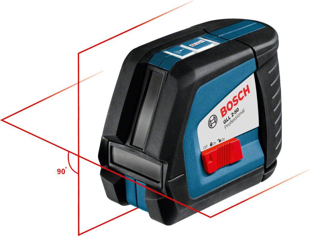 Это один из самых простых «бошевских» нивелиров с двумя перекрестными лазерными лучами. Дальность его невелика – всего 10 метров, поэтому работать с ним можно только в относительно небольших помещениях. Погрешность определения горизонта минимальна и составляет примерно 3 миллиметра на 10 метров. Диапазон самонивелирования стандартный для уровней такого типа: при отклонении более, чем на 4 градуса, проецированные линии начинают медленно мигать, сигнализируя об ошибке. Лазер надежно защищен от попадания воды и пыли, а прорезиненный корпус позволяет не бояться падений прибора.