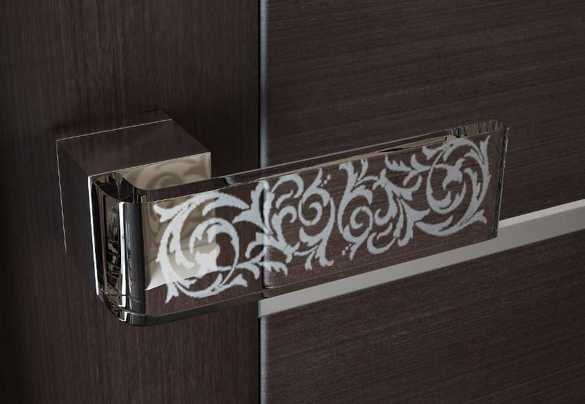 Стеклянная фурнитура – необычное украшение интерьера. Модели представлены в широком многообразии оригинальных конфигураций и дизайна. Главными недостатками стеклянных ручек является хрупкость конструкции и высокая стоимость изделий.