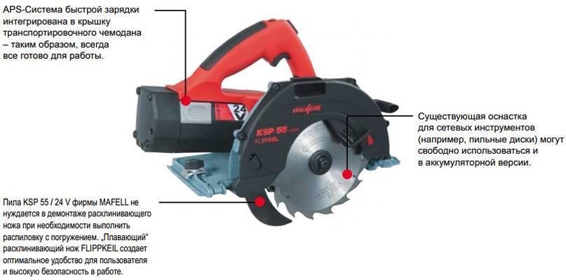 Аккумуляторная ручная циркулярная пила MAFELL: строение и принцип работы инструмента схож для всех устройств подобного типа