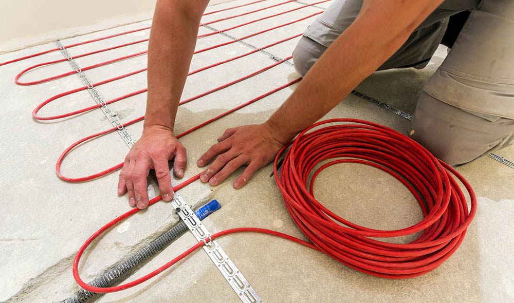 Кабельный тёплый пол состоит из провода с высоким сопротивлением, разогревающимся при пропускании через него электрического тока и нагревающим стяжку.