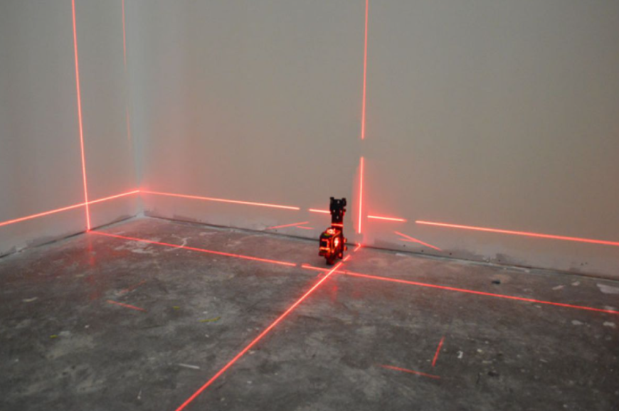 - В результате строитель получает плоскость, с помощью которой может выявить самую высокую точку на стене, по которой будет осуществляться выравнивание;