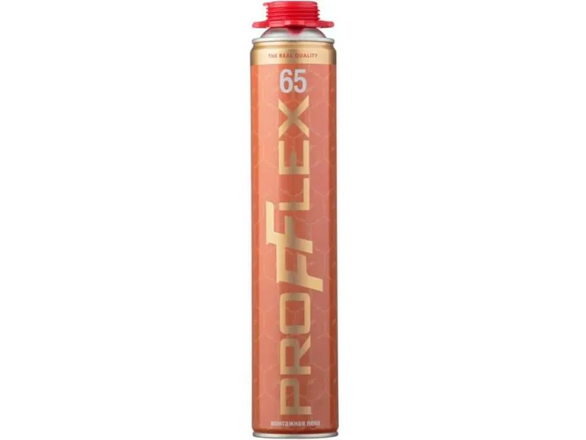 PROFFLEX PRO GOLD на выходе по заявлению производителя дает до 65 литров вспененной массы, что на практике фактически совпадает. Применяется состав при положительной температуре. Отличительные черты: быстрое затвердевание, экологичность в соответствии с сертификатами, низкое вторичное расширение и экономный расход.