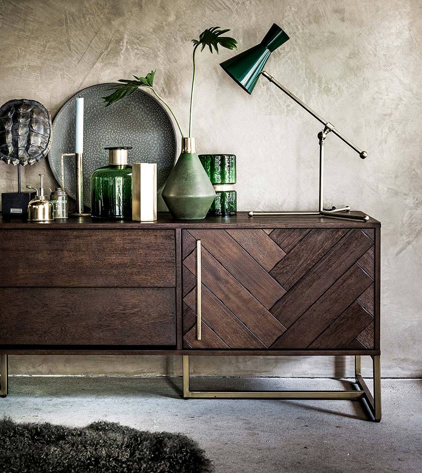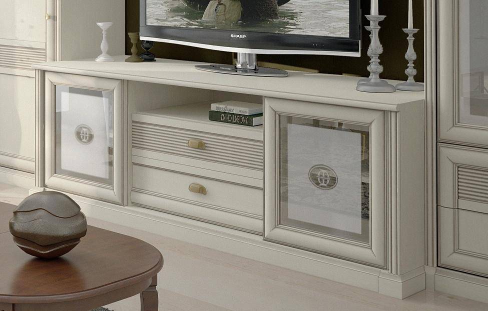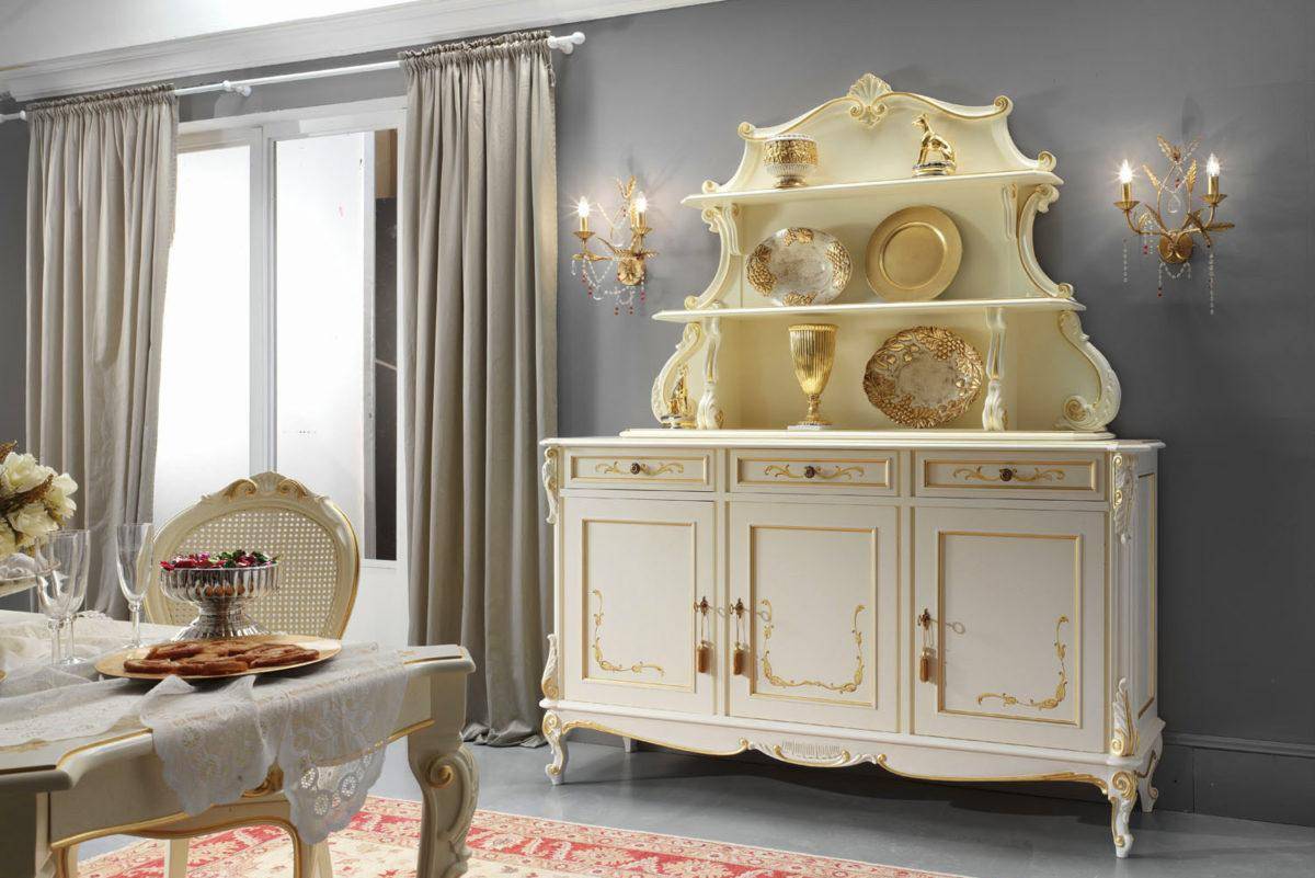 Комод в классическом стиле с золотой патиной в отделке гостиной