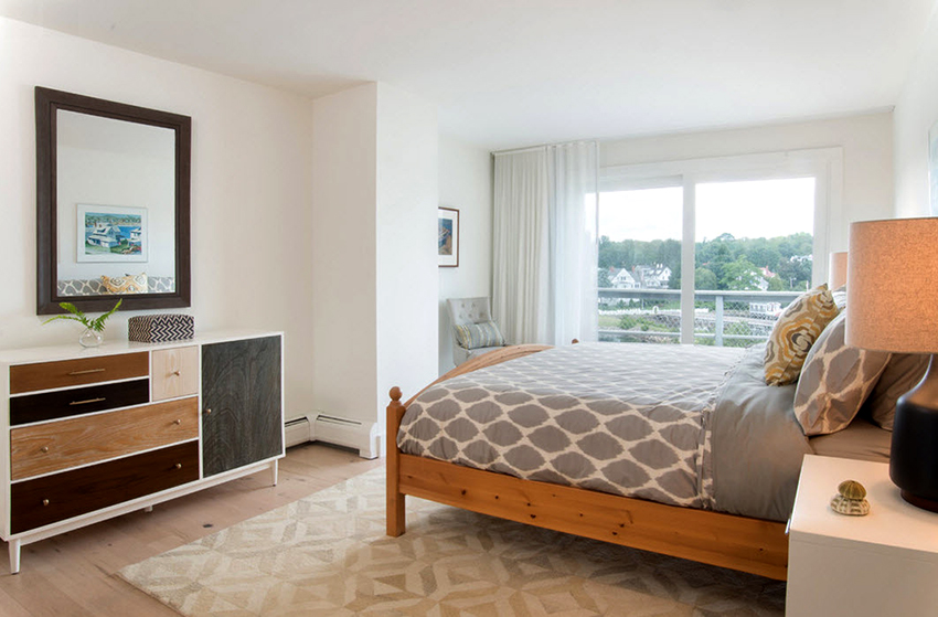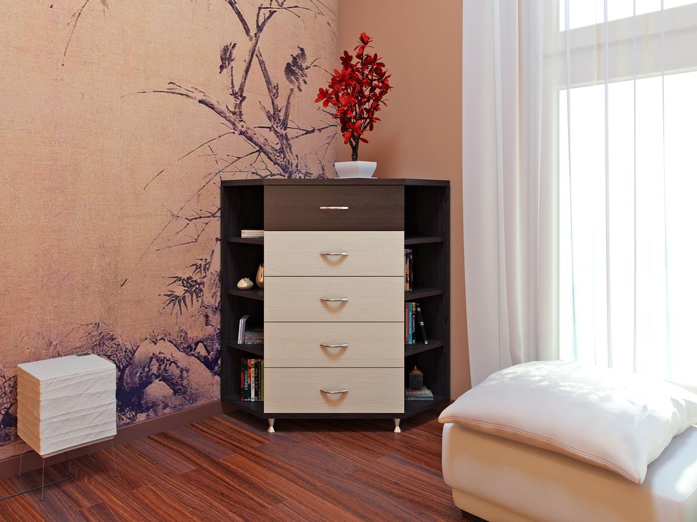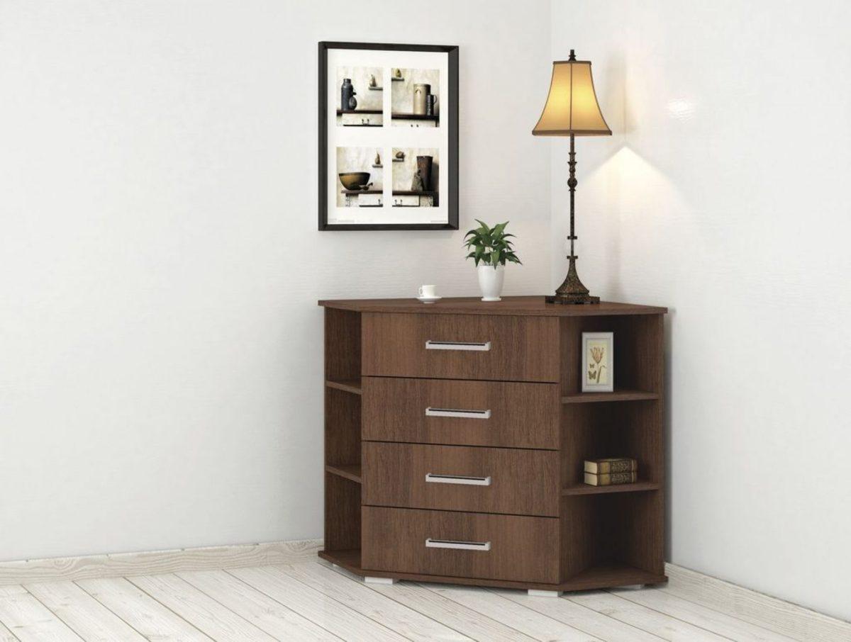 Чтобы сэкономить пространство в маленьких спальнях, отличным решением выступит угловой комод.