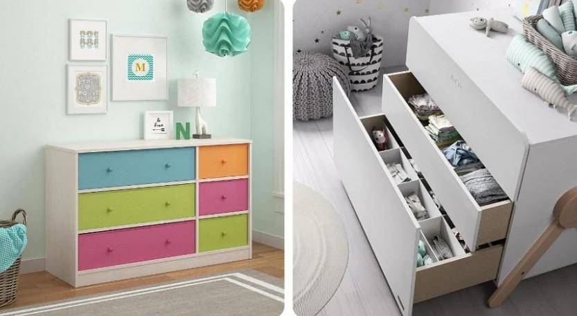 Комод – тот универсальный вариант мебели, которым ребенок может беспрепятственно пользоваться с первых сознательных шагов своей жизнедеятельности. Любые шкафы, полки, стеллажи имеют недосягаемые верхние части. В правильно подобранном по высоте комоде малышу доступны все зоны.