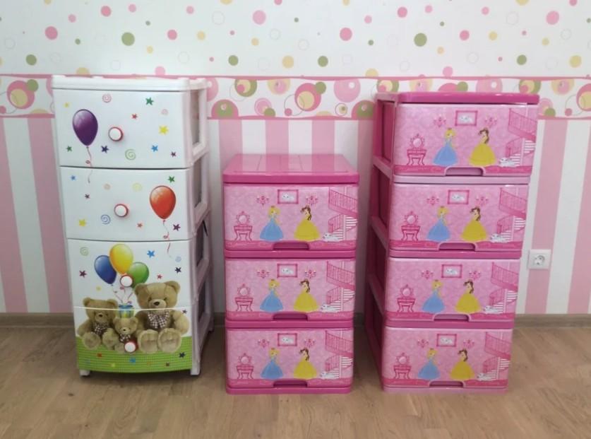 Дизайнеры предлагают также множество других интересных вариантов комодов для детей. Это и классической формы тумбы с ящиками, где фасадная часть выполнена из древесных плит разного цвета, и комоды с легкими выдвижными ящиками из ротанга, с фасадной частью, оформленной рисунками, накладками, фотопечатью.