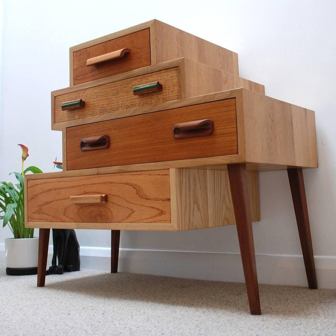 Классический комод – это 4 ящика, расположенных параллельно друг над другом. Верхний бывает разделен на две части. Обычно он ниже остальных. Такой комод вы легко найдете готовым. А вот комоды со свободным расположением ящиков, сочетанием полок и ящиков, открытых них, надстройкой, выдвижной рабочей поверхностью, зеркалом, гладильной доской – это уже то, что вам придется делать на заказ.