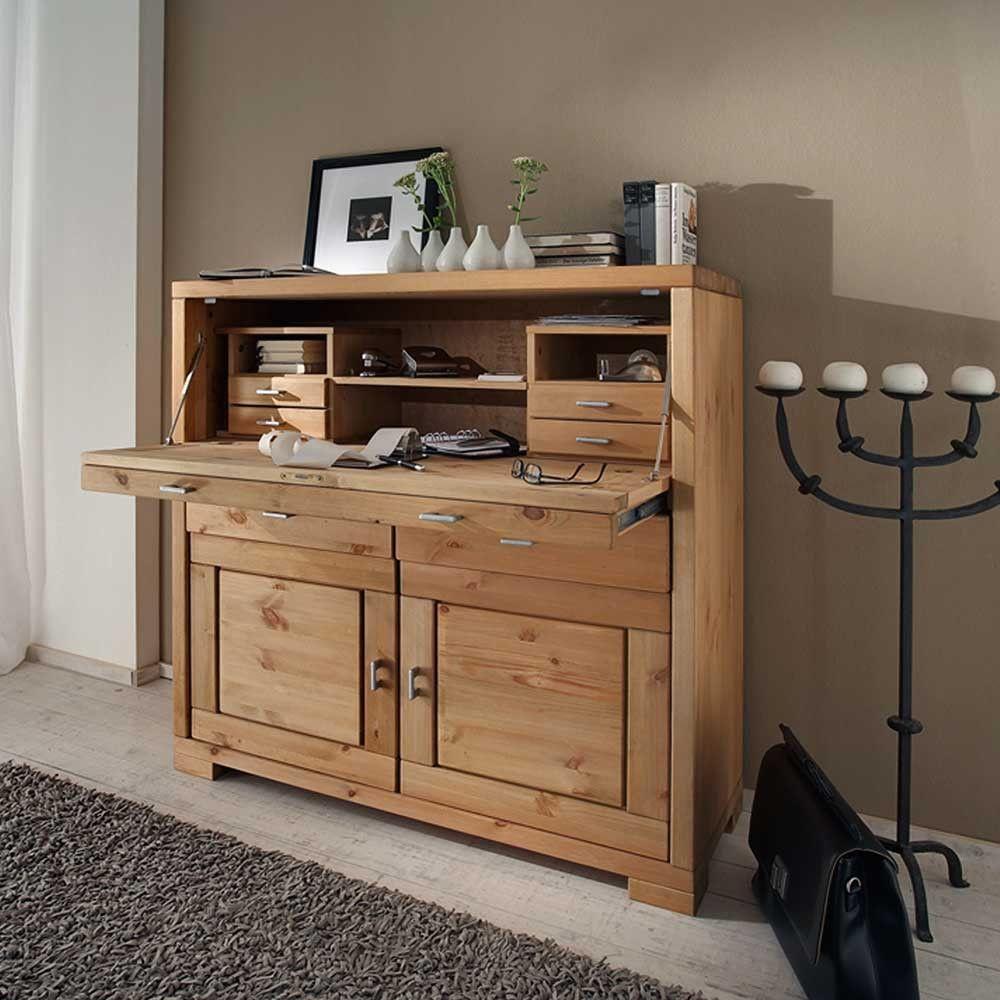 Ещё один новомодный тренд – комод-бюро. Он устанавливается возле окна, верхняя секция имеет откидную створку, за которой находятся небольшие ящички для хранения документов, украшений, мелкой фурнитуры для рукоделия. Дверца при открывании становится удобной столешницей.