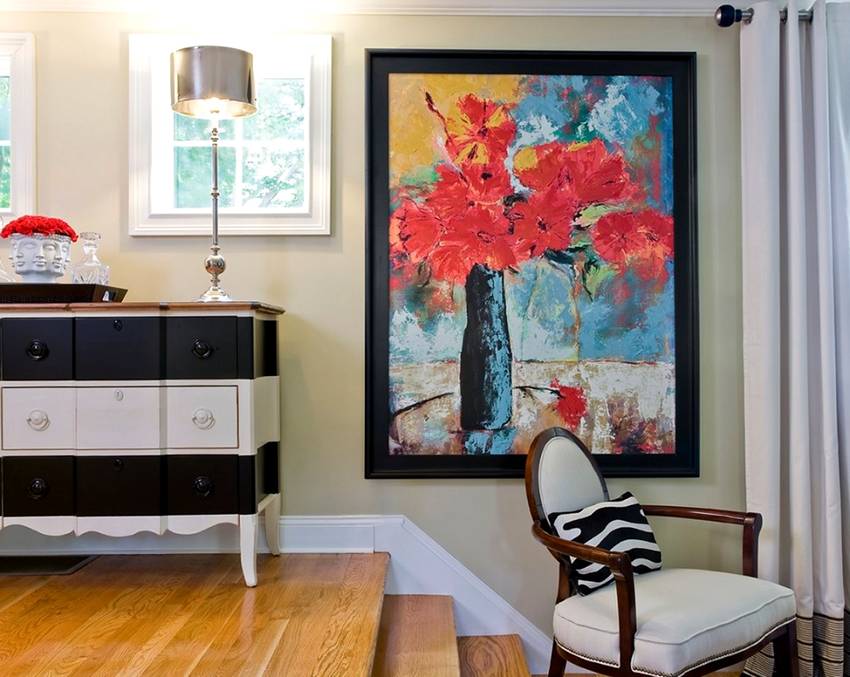 Комод в комнате можно украсить декоративной вазой или картиной.