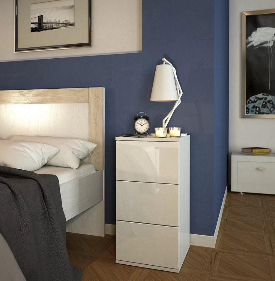 Такая мебель станет альтернативой платяному шкафу и навесным полкам. В него можно убрать большое количество вещей. Ставят такие комоды перпендикулярно кровати или к смежной стене. Уместить его в одну линию со спальным местом гармонично не получится, да и это ни к чему.