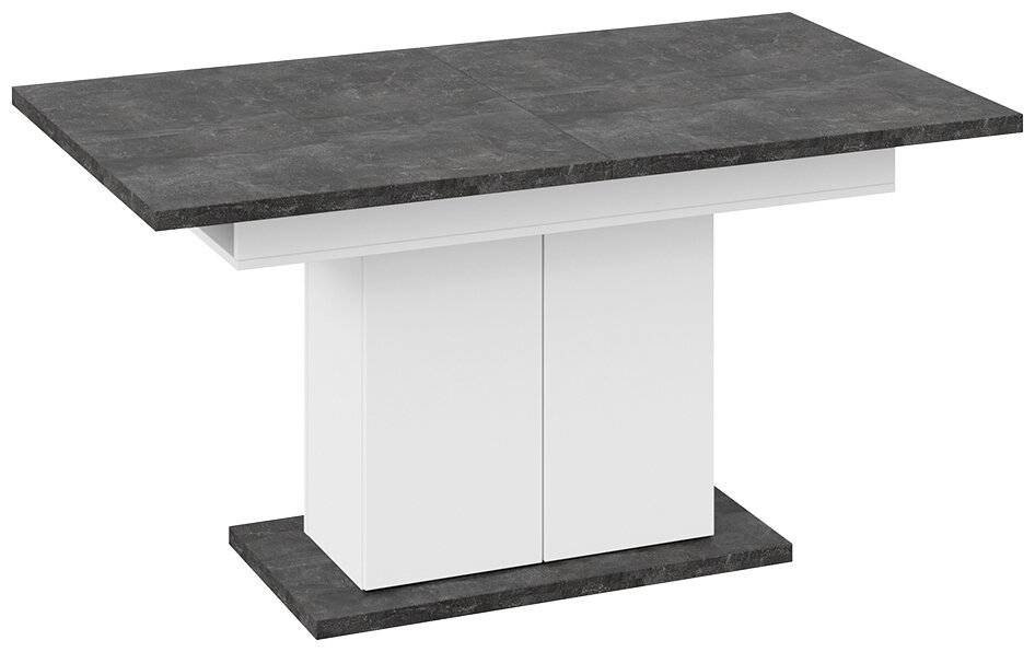 ТриЯ Детройт тип 1 – раздвижной стол, предназначенный для установки на кухне. Оформлен в современном двухцветном стиле, выполнен из прочных материалов с весьма привлекательной отделкой, устойчивой к механическим воздействиям. Столешница изготовлена из прочных ЛДСП плит с толщиной 32 мм. Её размеры в сложенном виде составляют 150,4х85 см, а в разложенном – 201,4х85 см. Высота стола составляет 77 см. Стойка сделана из панелей ЛДСП, внутри неё расположена ниша для хранения различных предметов. Под столешницей расположена ниша для дополнительной секции. Основание стола очень массивное и широкое, благодаря чему обеспечивается высокая его устойчивость.