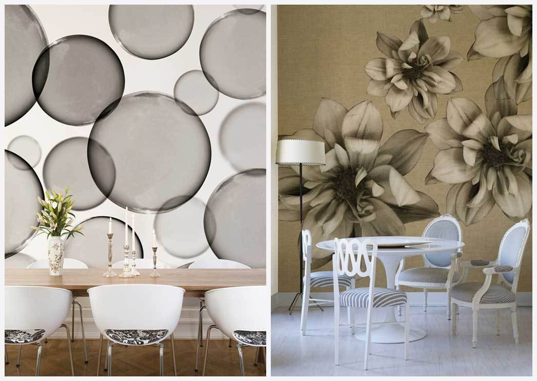 Фотообои в обеденной зоне будут тоже допустимы. Сюжет их должен соответствовать стилю: