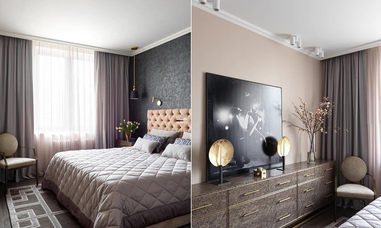 Совет: если спальня предназначена для пары, отдайте предпочтение нейтральным оттенкам. Это может быть светлый бежевый тон или более насыщенный, например, зеленый.
