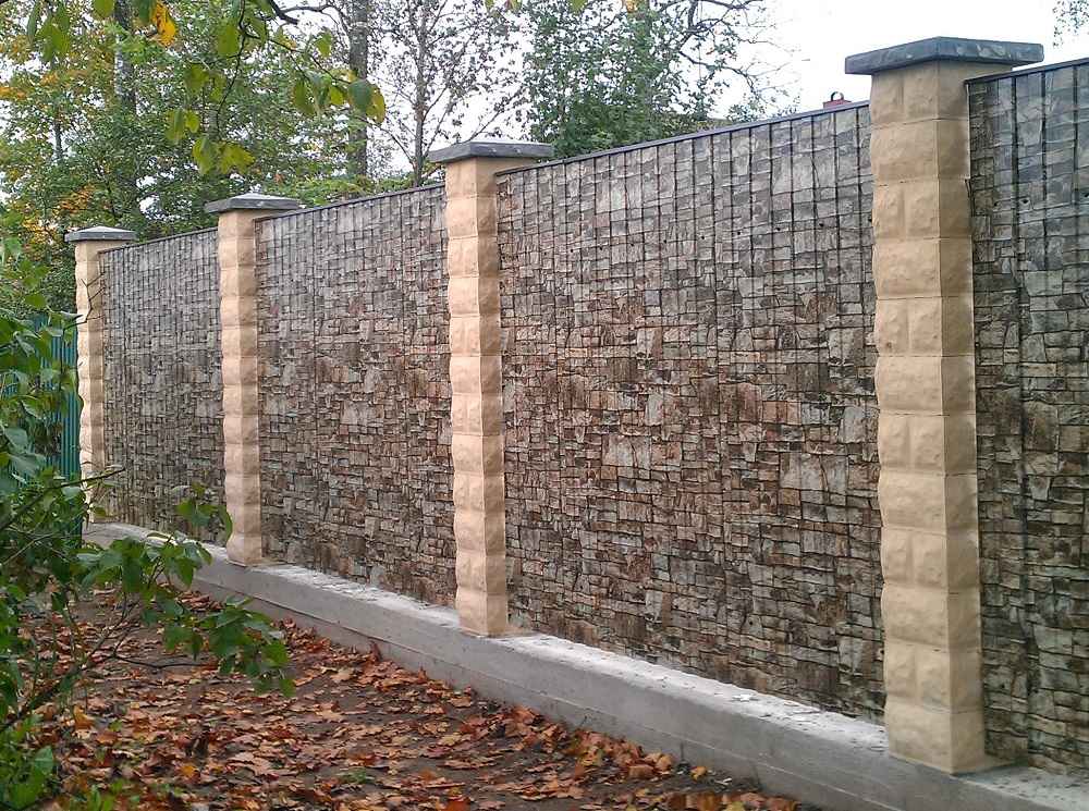 - Можно использовать вместе с другими строительными материалами (кирпичом, бетоном, деревом, натуральным камнем) – ограждение получится более привлекательным и оригинальным. Таким образом, можно поставить в полном соответствии с общим дизайном участка и стилем дома.