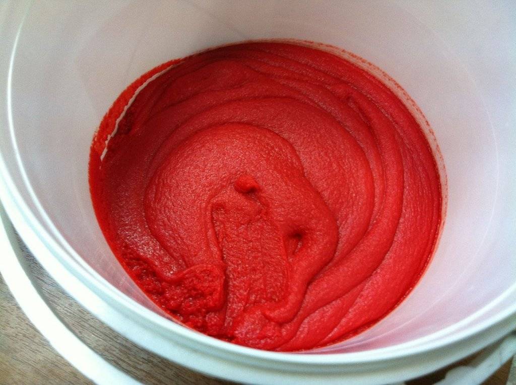 К чисто красному плиточному материалу возьмите розовый раствор, чтобы затереть швы.