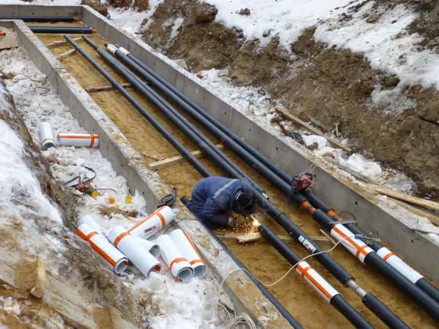 - Прокладывание трубопровода в грунте подразумевает монтаж от несущего фундамента;