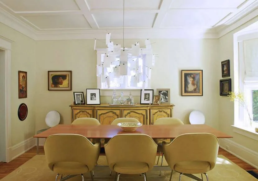 Данный стиль также может органично комбинироваться с простыми и лаконичными формами кессонного потолка.