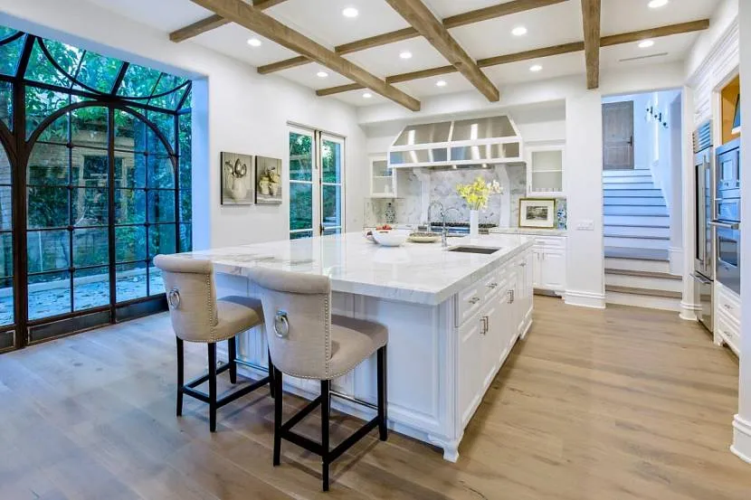 Софиты. Если вы хотите чтобы потолок смотрелся ниже, чем высота балок, подумайте об установке софитов. Софиты понижают потолок и создают более интимную атмосферу. Этот вариант подходит для больших комнат с высокими потолками.