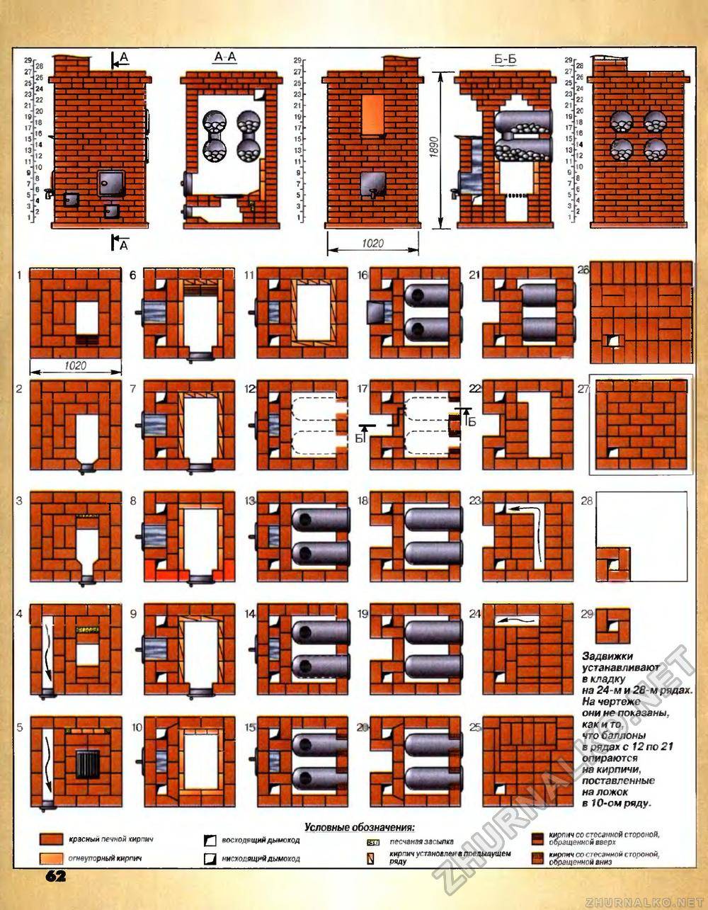 Схемы обкладки печей кирпичом