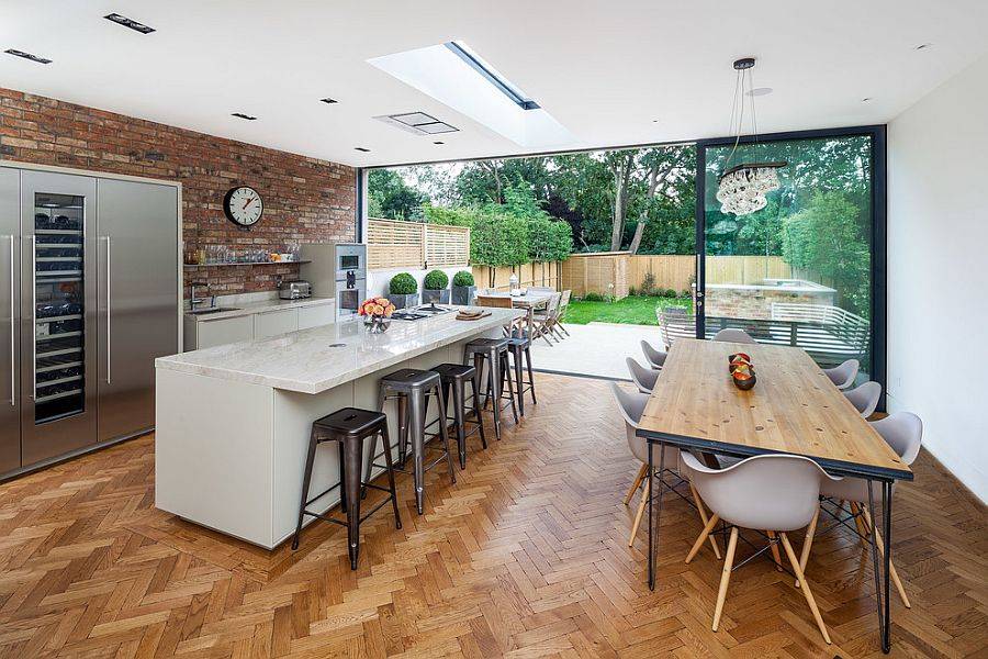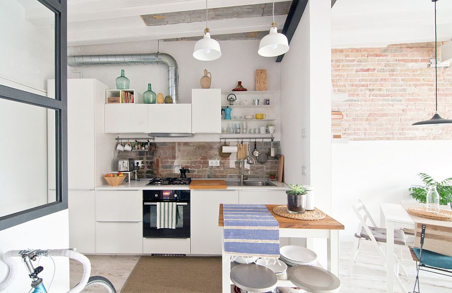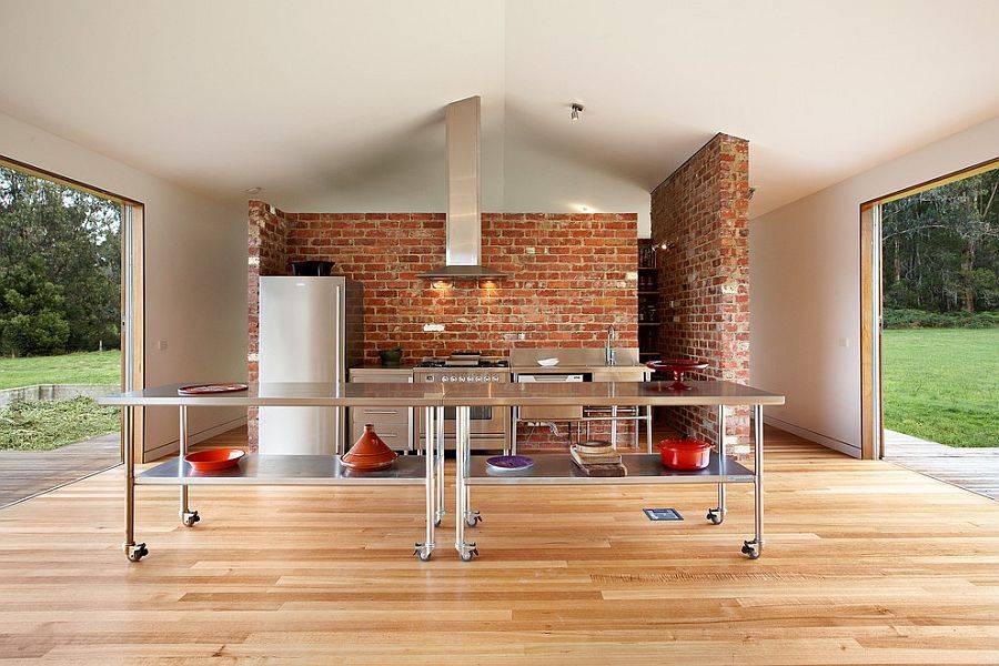 Кирпичная стена в кухне от Corynne Pless лишь украшает интерьер