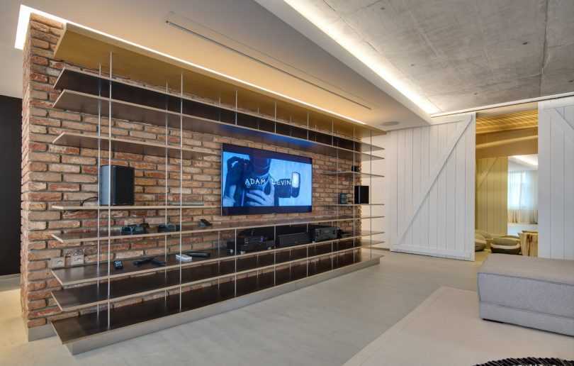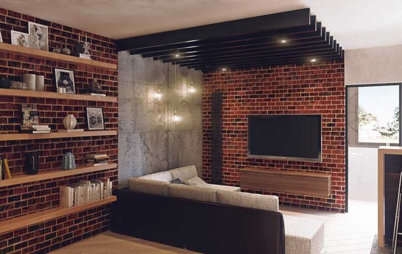 Главным плюсом стенки из кирпича считается ее прочность, сломать ее можно только кувалдой или отбойным молотком.